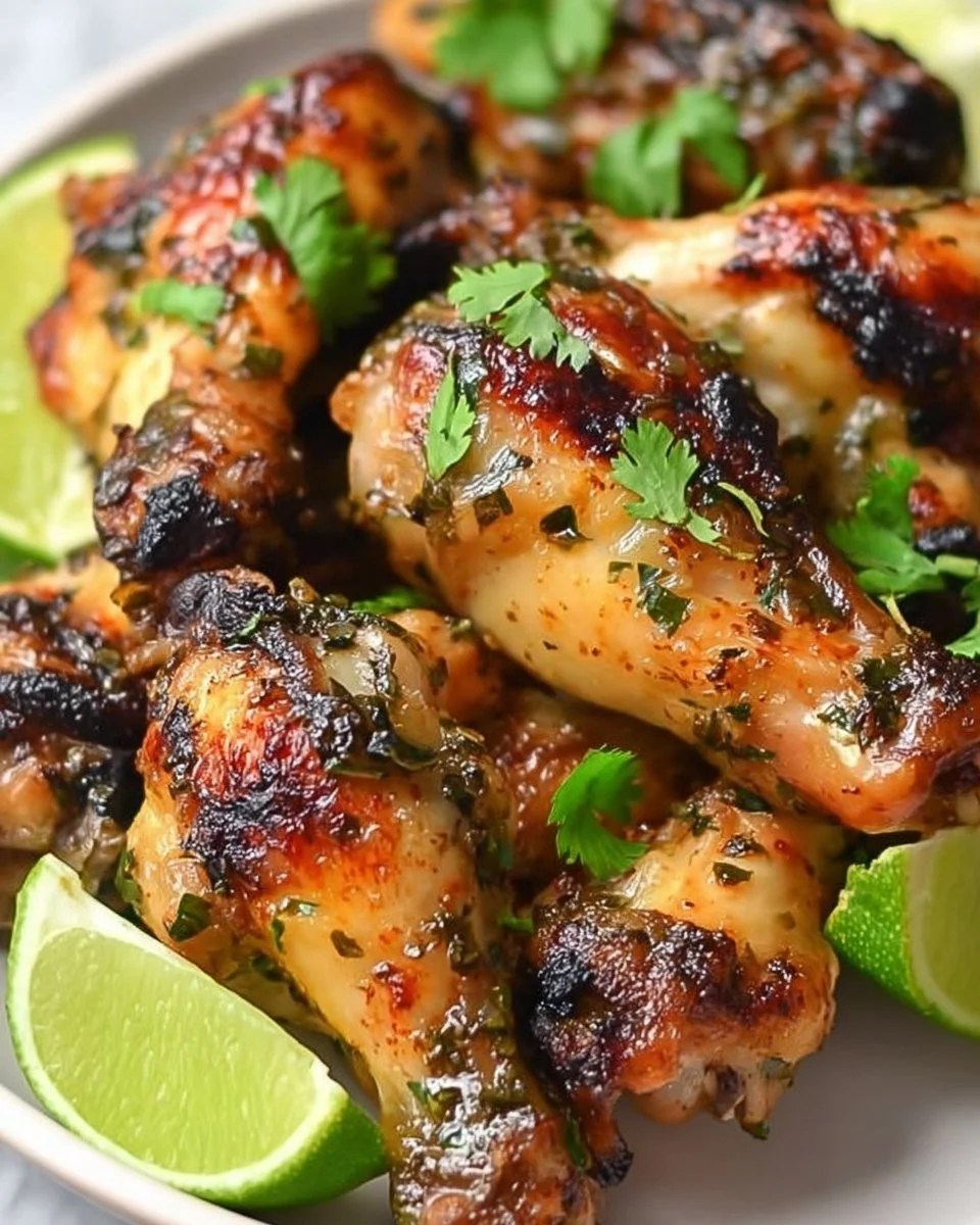 Juicy chicken wings marinated in a vibrant cilantro and lime mixture, perfect for gatherings and game day.